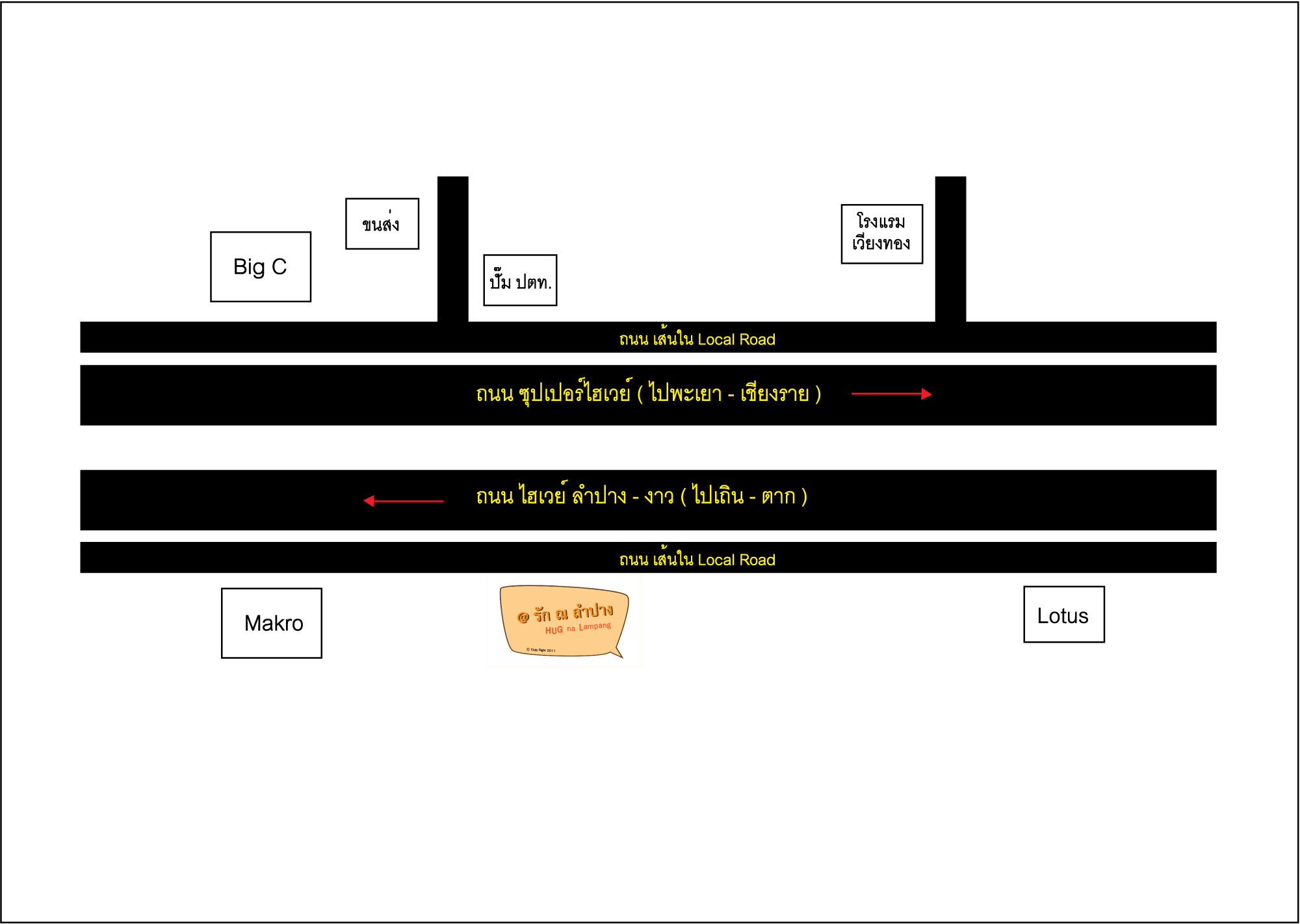 Hug na Lumpang is located on Super Highway Road Lumpang – Ngao , Opposite PTT gas station and transportation Lumpang. It’s between Makro and Lotus.Parking along side road in font of shop. Call. 0-83866-8910