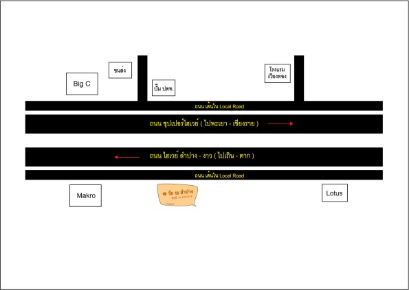 แผนที่ทางไปร้านกาแฟสด รัก ณ ลำปาง สามารถคลิ๊กเพื่อขยายภาพดูได้ครับ ดูจากภาพแผนที่แล้วไม่น่าหายาก เนื่องจากอยู่ในทำเลดี คือระหว่างห้าง แม็กโคร ลำปาง Makro กับ ห้างโลตัส ลำปาง บนถนนเส้นในของลำปาง Local Road Lumpang จากภาพ ถนนเส้นบนเป็น ถนนซุปเปอร์ไฮย์เวย์ ไปจังหวัดพะเยา – เชียงราย ถนนเส้นล่าง เป็นถนนไฮย์เวย์ ไป ลำปาง – งาว และอำเภอเถิน จังหวัด ตาก ฝั่งตรงข้ามกับ บิ๊กซีลำปาง Big C Lumpang , ขนส่งจังหวัดลำปาง , ปั๊ม ปตท. , โรงแรมเวียงทอง